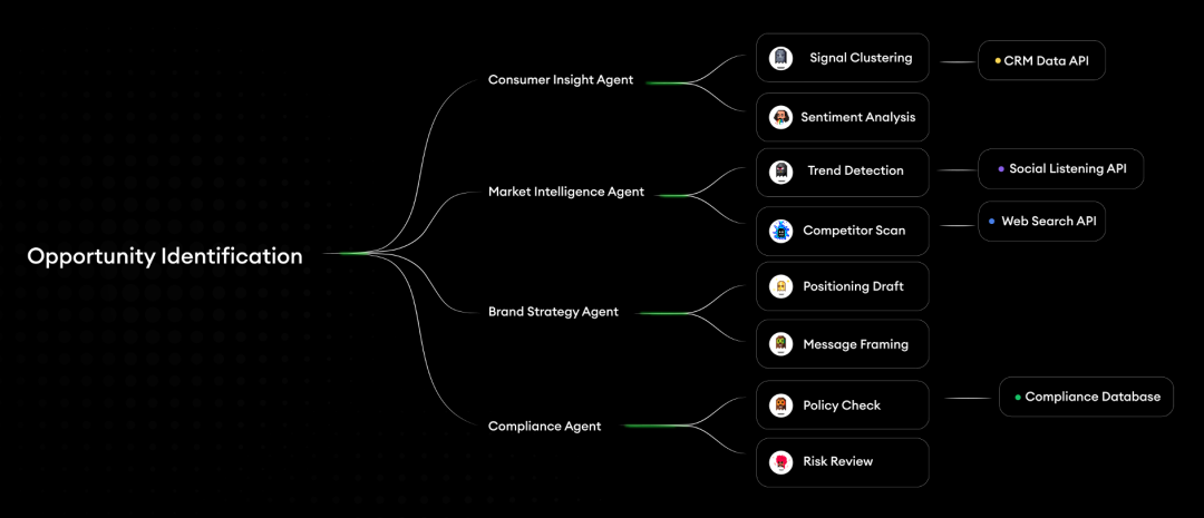 The execution end is not a single Agent dominating everything, but rather an Agent Team, with specialized Agents collaborating on brand tone, user analysis, and compliance review. These Agents can perform their respective roles while maintaining consistency because they share the same brand language, user profiles, and business rules within the Context System.