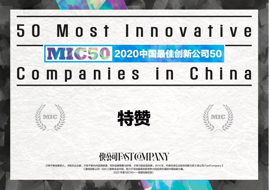《快公司FastCompany》是美国著名的三大商业媒体之一,自2008年以来,每年推出“全球最佳创新公司50”(Most Innovative Companies 50,简称MIC50,或Fast50),已成为全球享誉盛名的榜单。