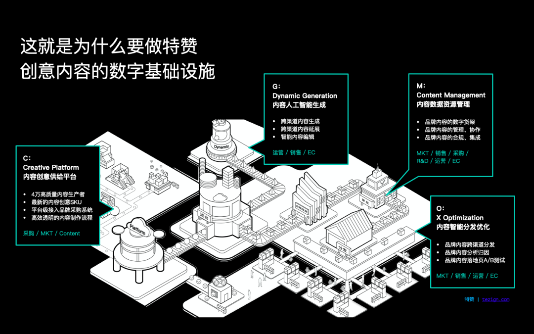特赞致力于建构创意内容的数字新基建,通过两大技术引擎——Tezign.EYE(创意内容的图像处理引擎)和 Tezign.MIND(创意能力的机器学习引擎),特赞帮助企业管理高并发流程,并沉淀海量过程数据,在为企业高效匹配创意资源的同时,为企业提供商业洞察,赋能企业智能化升级。自2015年成立以来,特赞与超过200家中大型企业,超过8000家品牌共同探索和进化,包括:联合利华、阿里巴巴、星巴克、字节跳动、碧桂园、资生堂等。特赞用平台化和智能化,赋能品牌的内容创意数字化,系统性变革企业生产、管理、生成、优化内容的方式。